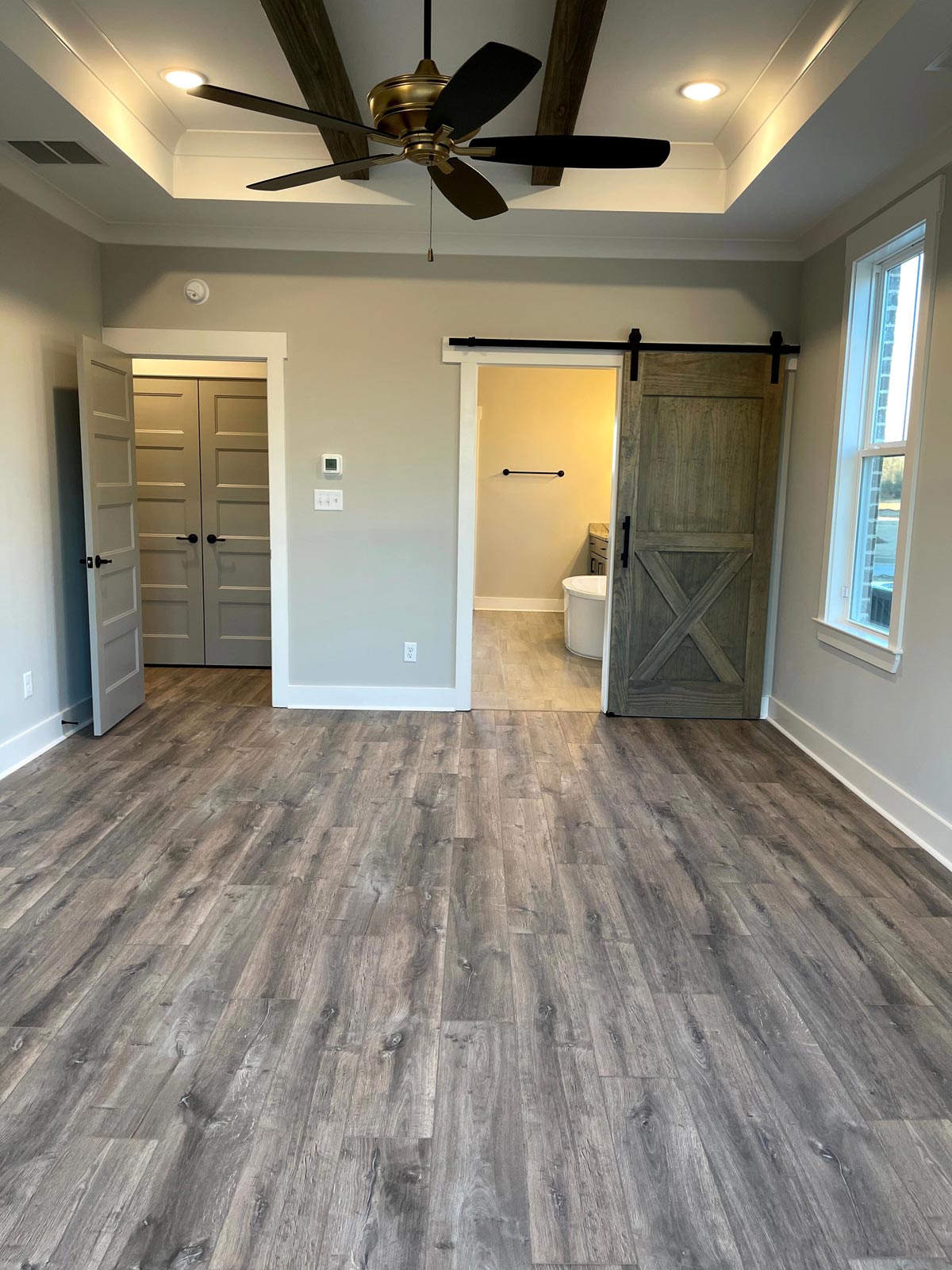 Beautiful modern farm style home with 4 bedrooms, 3 baths, and a large bonus room. Open concept with large great room, kitchen, and breakfast area. Kitchen has plenty of space and has a large pantry just off the kitchen. Breakfast area has a tray ceiling with a cedar accent and can accommodate the largest of tables. Great room has cathedral ceiling with cedar beams and built ins. The master suite features a large bedroom with tray ceiling, split vanities, large walk in shower, and walk in closet. All the bedrooms and bonus room have walk in closets. Enjoy outdoor living with a vaulted covered back porch.