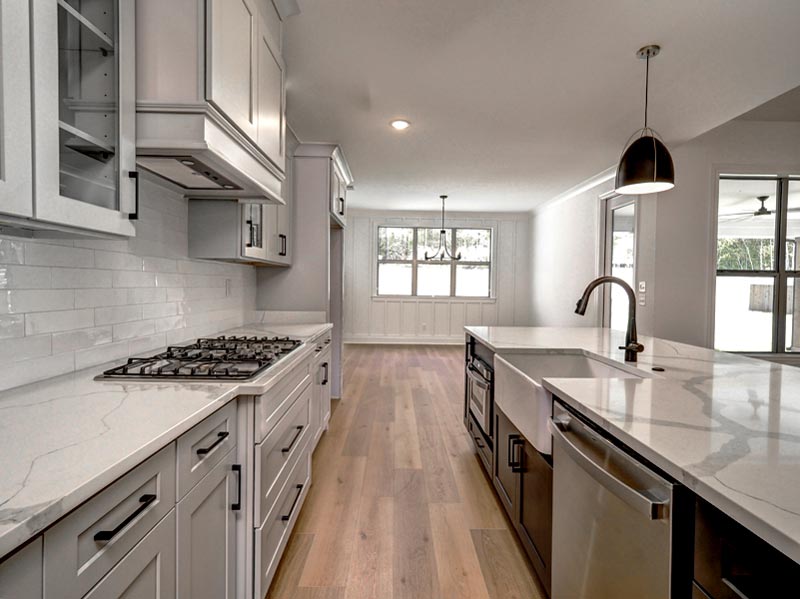 Beautiful modern farmhouse home which is a modification of our Blanton Trace plan. This version enlarges the primary suite and allows direct access from the closet to the laundry room via a pocket door. Also increases the size of the dining area and walk in pantry.