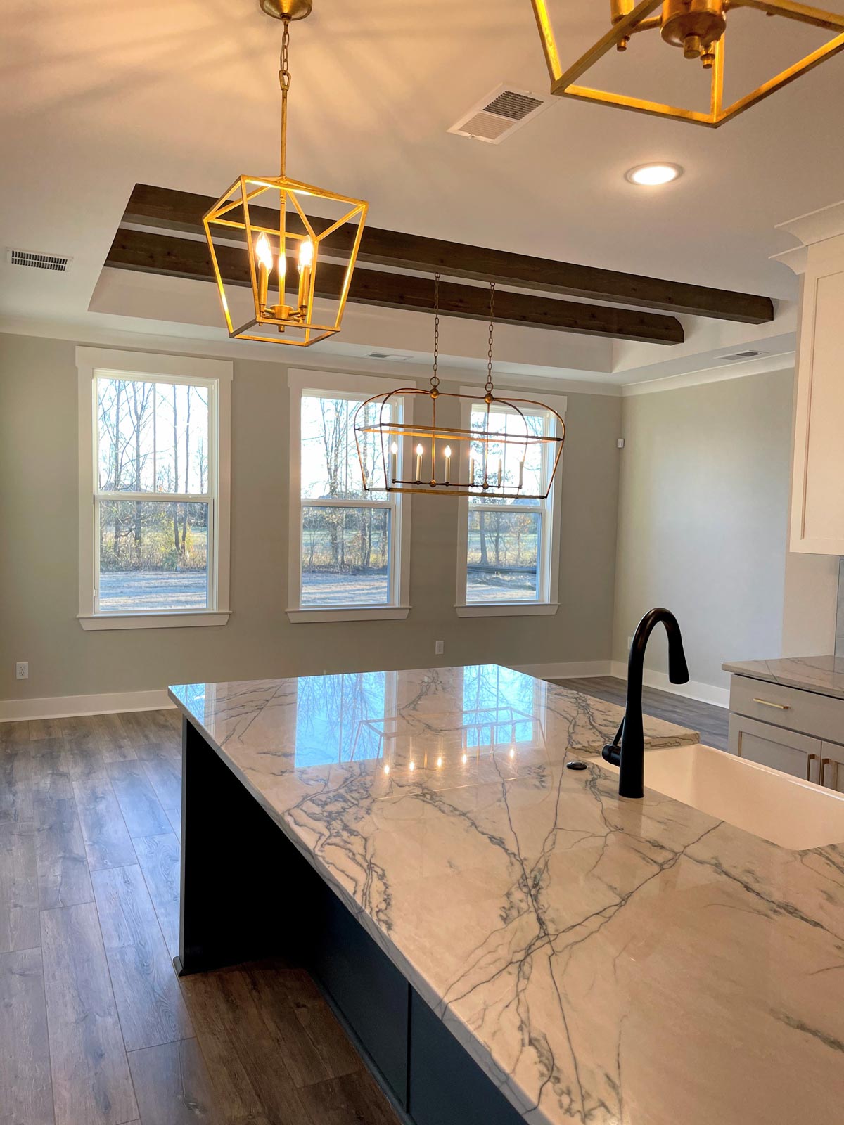 Beautiful modern farm style home with 4 bedrooms, 3 baths, and a large bonus room. Open concept with large great room, kitchen, and breakfast area. Kitchen has plenty of space and has a large pantry just off the kitchen. Breakfast area has a tray ceiling with a cedar accent and can accommodate the largest of tables. Great room has cathedral ceiling with cedar beams and built ins. The master suite features a large bedroom with tray ceiling, split vanities, large walk in shower, and walk in closet. All the bedrooms and bonus room have walk in closets. Enjoy outdoor living with a vaulted covered back porch.